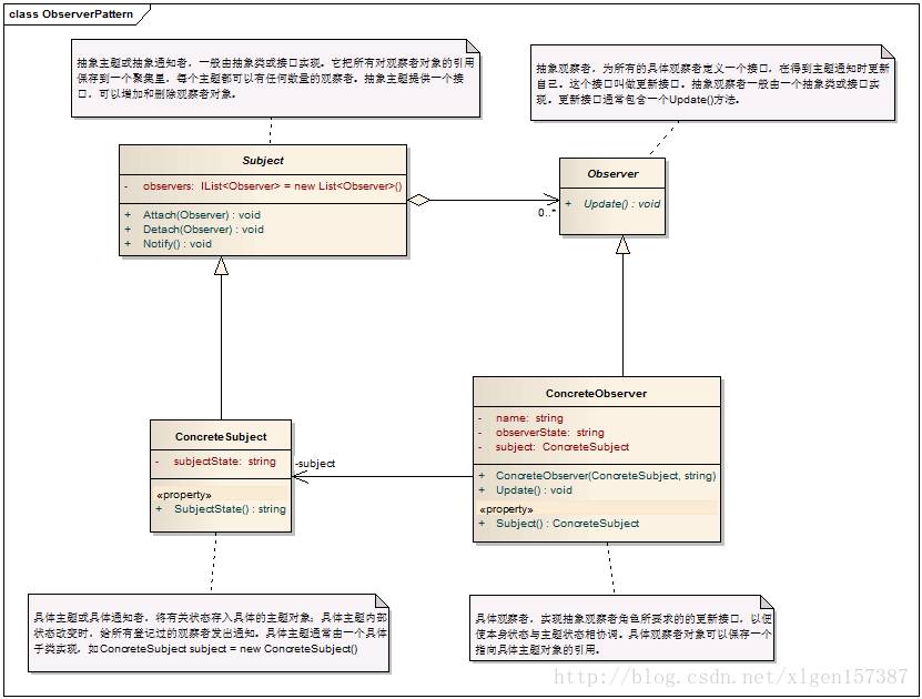 将一个系统分割成一个一些类相互协作的类有一个不好的副作用,那就是需要维护相关对象间的一致性。我们不希望为了维持一致性而使各类紧密耦合,这样会给维护、扩展和重用都带来不便。观察者就是解决这类的耦合关系的。