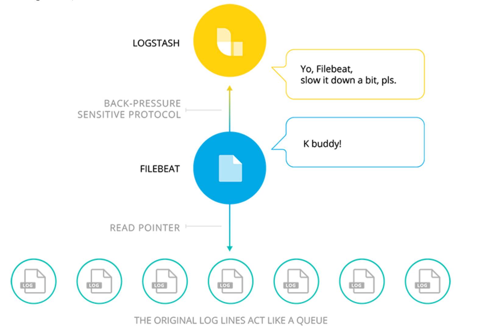 Filebeat使用压力敏感协议(backpressure-sensitive)来传输数据,在logstash忙的时候,Filebeat会减慢读取-传输速度,一旦logsta恢复,则Filebeat恢复原来的速度。