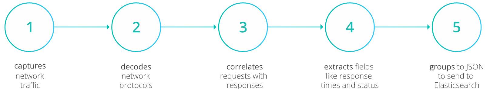 Packetbeat可以让你实时在目标服务器上进行抓包-解码-获取请求和响应-展开字段-将json格式的结果发送到Elasticsearch