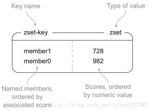 一个有序集合类型的实例,zset-key是一个包含两个元素的有序集合键: