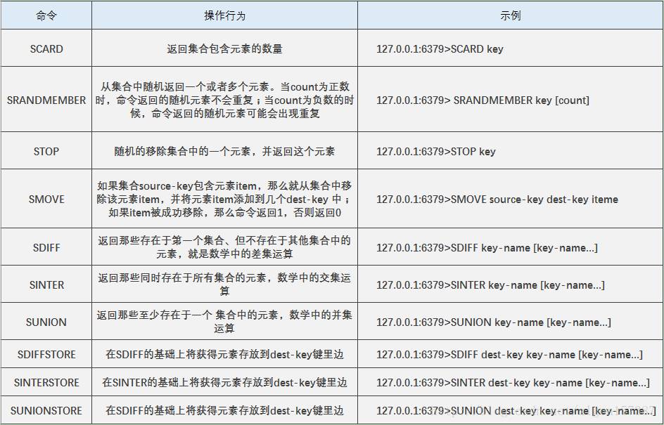 (2)除了常见的命令之外,还有交集、并集、差集的计算,如下: