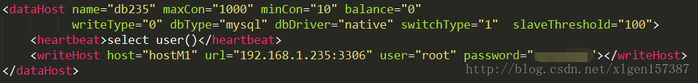 这个配置的就是具体的某一个MySQL服务器节点的,这里配置的意思是:对于该dataHost 所有的读写都发生在192.168.1.235 主机上。