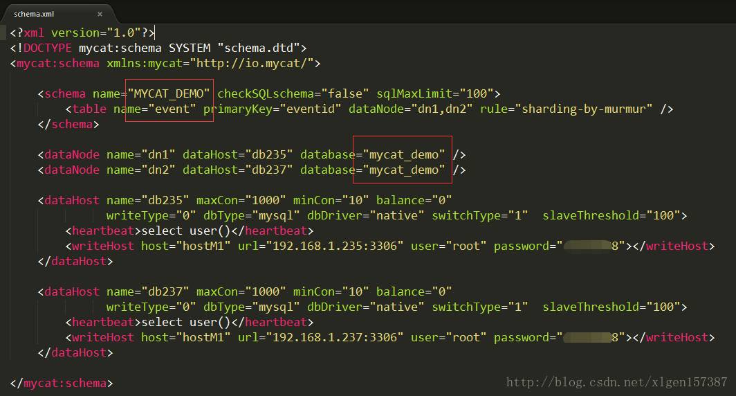 <dataNode name="dn1" dataHost="db235" database="mycat_demo" />