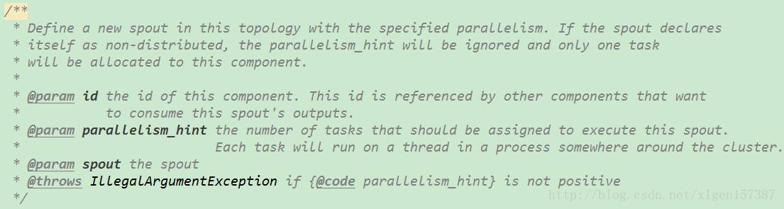 注意官方API对于<span style="font-size: 14px;">setSpout()</span>方法的定义注释是这样的: