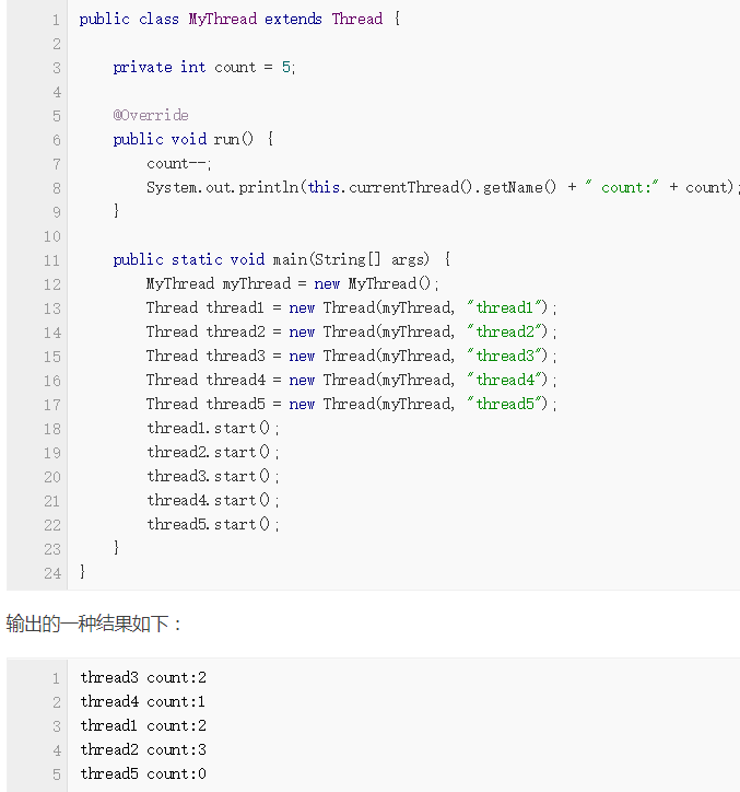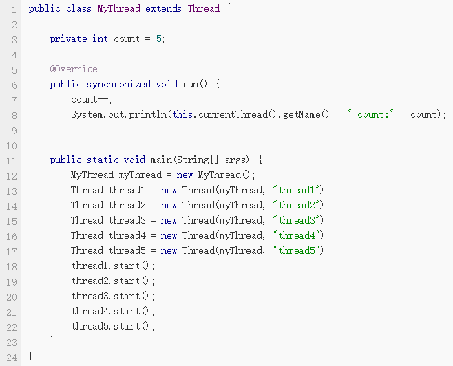 可以看到,上述的结果是不正确的,这是因为,多个线程同时操作run()方法,对count进行修改,进而造成错误。