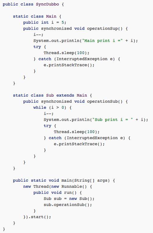 可重入锁支持在父子类继承的环境中,示例代码如下: