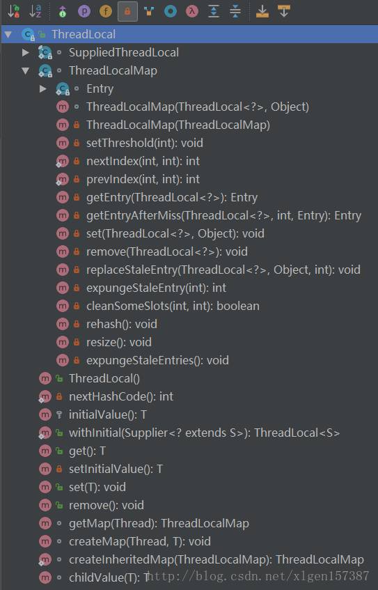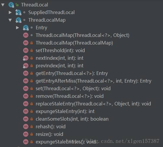 ThreadLocal全部方法和内部类结构如下: