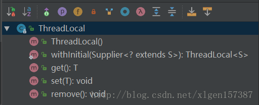 ThreadLocal公有的方法就四个,分别为:get、set、remove、intiValue: