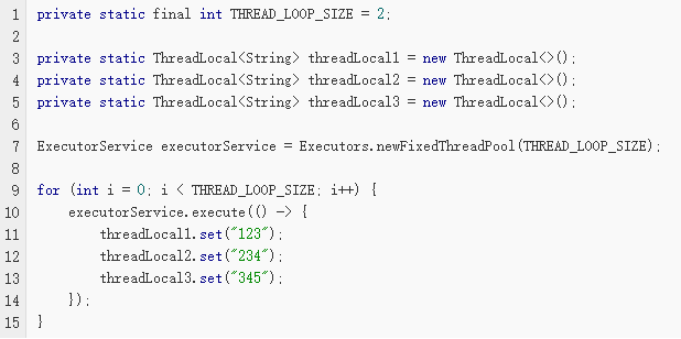 但是,当我们使用线程池的时候,就意味着当前线程未必会退出(比如固定大小的线程池,线程总是存在的)。如果这样的话,将一些很大的对象设置到ThreadLocal中(这个很大的对象实际保存在Thread的threadLocals属性中),这样的话就可能会出现内存溢出的情况。