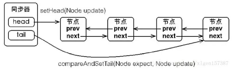 (2)由于同一时刻只有一个线程能够获取到同步锁,但可以有多个线程进入阻塞,也就是说将需要等待的线程Node插入到尾部是需要进行同步操作的,使用的方法是:<span style="font-size: 14px">compareAndSetTail(Node expect, Node update)</span> ,只有设置成功后,当前节点才正式与之前的节点建立关联。