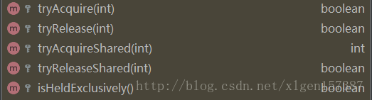 可以看出对于我们上述说的那5个方法,Sync只重写了一个:<span style="font-size: 14px">tryRelease()</span>,那么其他的几个方法那?