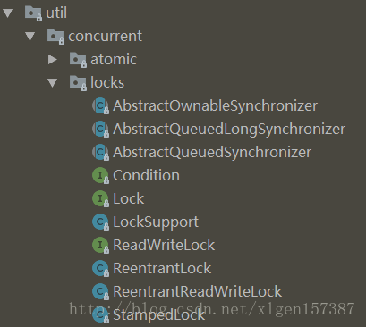 而关于Lock接口的使用,也在上一篇的内容中详细的介绍了关系Lock接口的使用案例。下边几张图显示了Lock相关类在Java 8 concurrent并发包下的大致位置和关系。