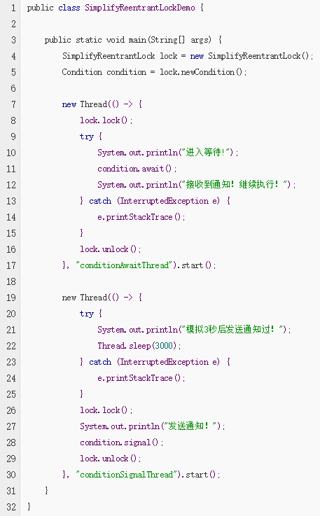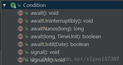 这个我们知道在使用synchronized的时候是使用wait和notify进行线程间通信,使用ReentrantLock的时候是使用Condition实现的线程间通信,而这正是AbstractQueuedSynchronizer帮我们进一步封装的Condition接口:
