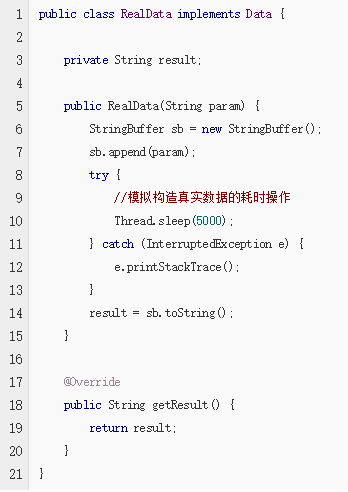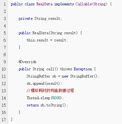 这里的RealData 实现了Callable接口,重写了call方法,在call方法里边实现了构造真实数据耗时的操作。
