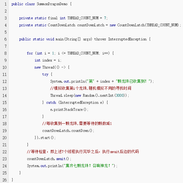 在《Java多线程编程-(8)-两种常用的线程计数器CountDownLatch和循环屏障CyclicBarrier》 这一篇中,我们使用线程计数器的方式实现了在主线程中等待计数的线程执行完之后在执行阻塞等待之后的代码。看段代码回顾一下:
