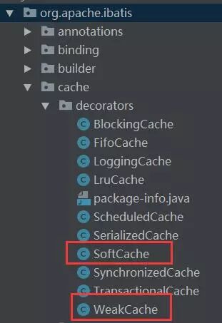 其实,上述的代码,是从MyBatis的源码中抽离出来的,MyBatis在缓存的时候也提供了对弱引用和软引用的支持,MyBatis相关的源码如下: