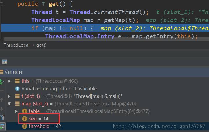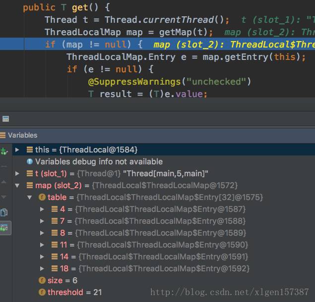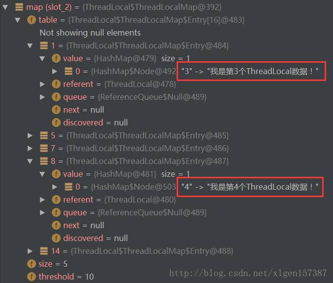 当for循环执行到最后一个的时候,看一下ThreadLocalMap的情况: