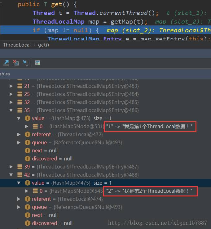 可见,虽然这里我们自己定义了30个ThreadLocal变量,但是最后的确只有14个,其中还有三个是属于其他的,还有一点值得注意的是,我们的<span style="font-size: 14px">threadLocal1</span>和<span style="font-size: 14px">threadLocal2</span> 变量,在进行GC垃圾回收的时候,弱引用的Key是没有进行回收的,最后存活了下来!使得我们最后通过get方法可以获取到正确的数据。