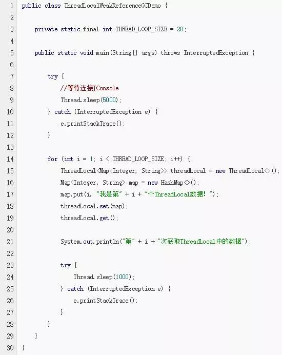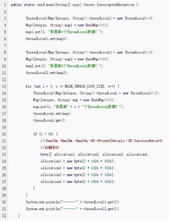 因此,就出现了最开始看到的threadLocal1、threadLocal2都还可以访问到数据(for循环里边的,由于作用于的问题,引用已经断开了),那我我们只有通过手动设为null的方式,看一下效果,代码改为如下: