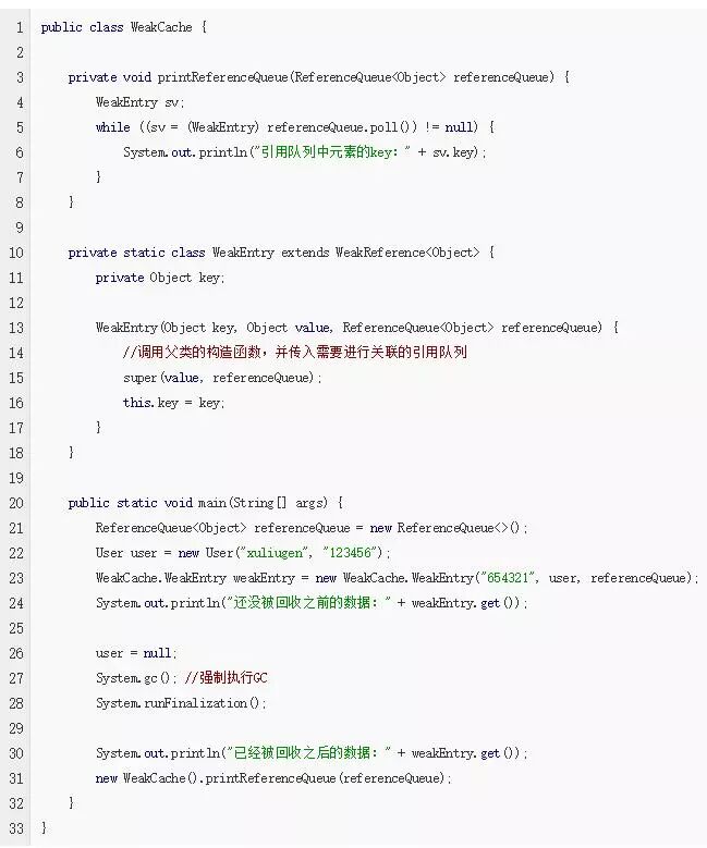 不仅仅是SoftReference支持使用引用队列,软引用和虚引用也可以关相应的引用队列。