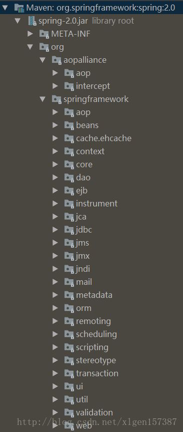 大概在2004年3月24日这一天,Spring Framework 1.0 final正式出现在我们的视野中,源码项目结构如下:
