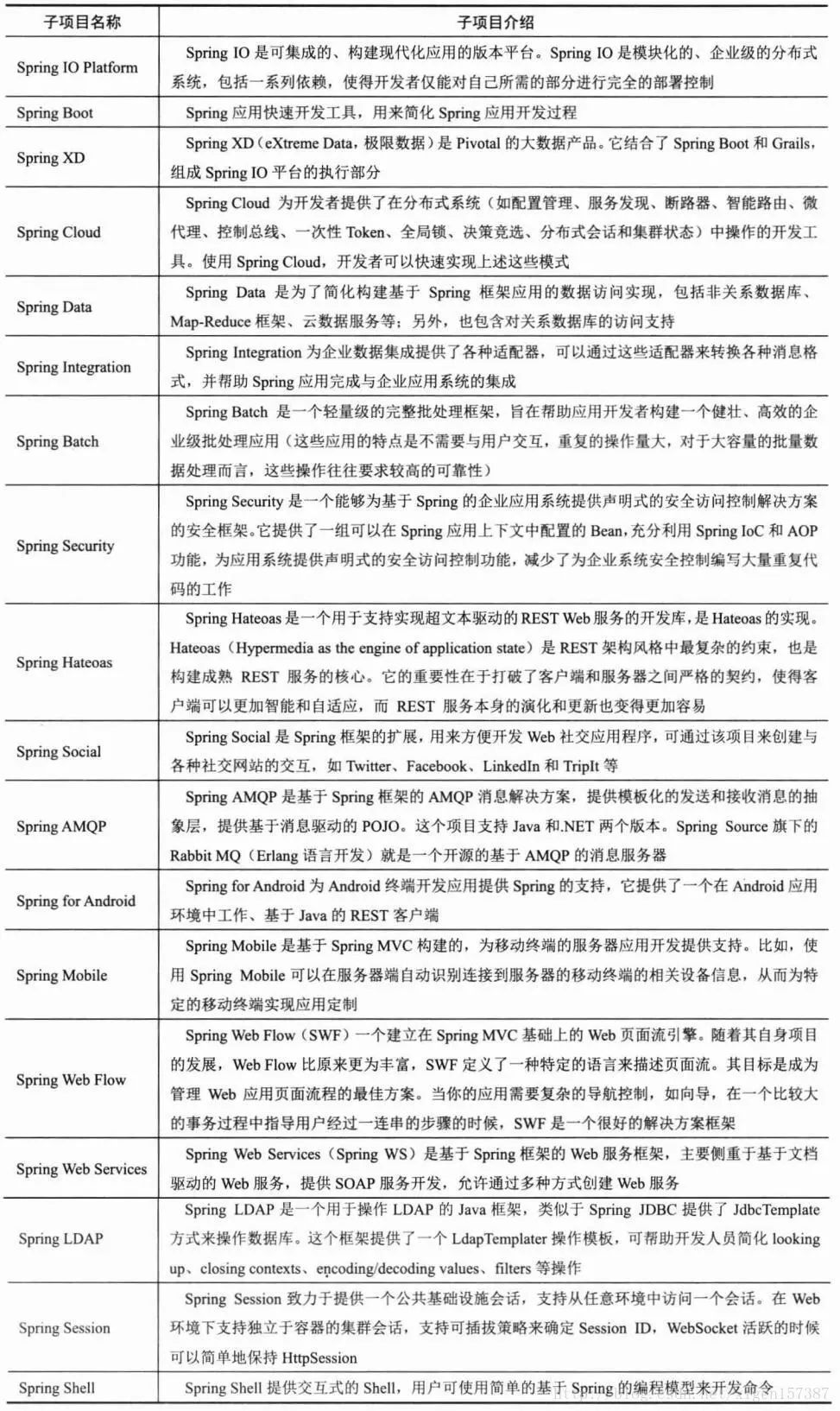 Spring从最初的一城一池,发展到如今已经发展为一个生态帝国,旗下拥有诸多的子项目,从最基本的Spring Ioc/AOP使用,到安全管理,再到大数据,Spring已经逐渐的渗入到各个领域。目前,几乎所有JavaWeb相关的开发都可以在Spring中找到合适的方案,为了在开发的时候,防止重造轮子,下边梳理一下Spring的各个子项目,做到心中有数: