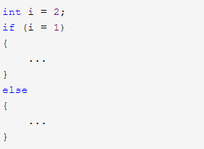 万一程序员一个不小心,把”if (i == 1)”写成”if (i = 1)”,这样就有问题了。在if之内将i赋值为1,if判断里面的内容非0,返回的就是true了,但是明明i为2,比较的值是1,应该返回的false。这种情况在C/C++的开发中是很可能发生的并且会导致一些难以理解的错误产生,所以,为了避免开发者在if语句中不正确的赋值操作,建议将if语句写为: