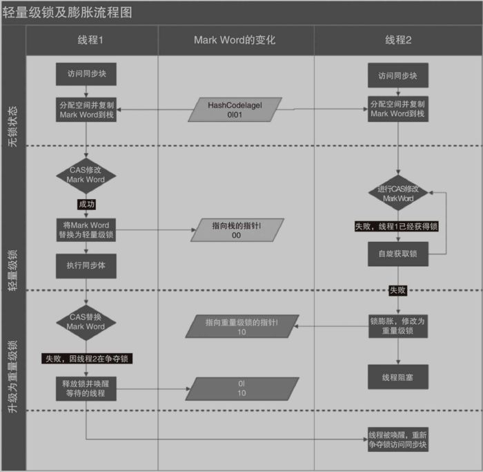 JavaSE1.6为了减少获得锁和释放锁带来的性能消耗,引入了“偏向锁”和“轻量级锁”。