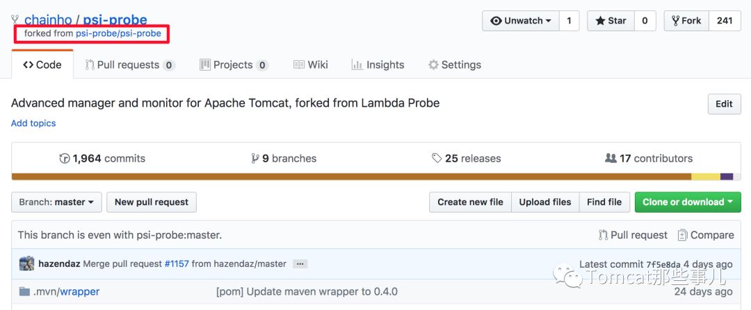 不久, Fork 成功后,这个项目会显示在你个人的 Repository 中。同时显示从哪Fork出来的。可以方便的进行源的跟踪。