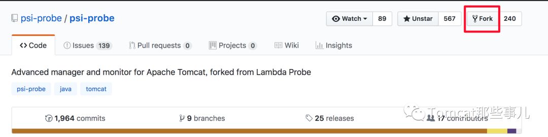 首先在 Github上找到要参与的项目,点击右上方的 「Fork」。