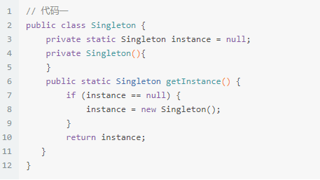 对于饿汉模式来说,这种写法已经很‘perfect’了,唯一的缺点就是,由于instance的初始化是在类加载时进行的,类加载是由ClassLoader来实现的,如果初始化太早,就会造成资源浪费。
