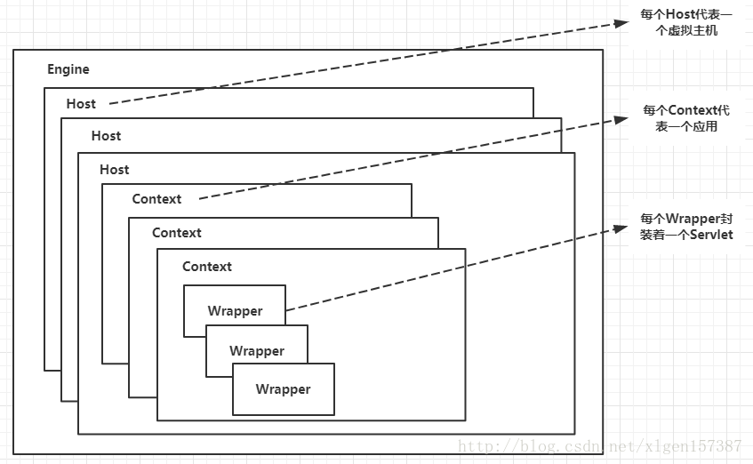 (4)Wrapper:每一Wrapper封装着一个Servlet;