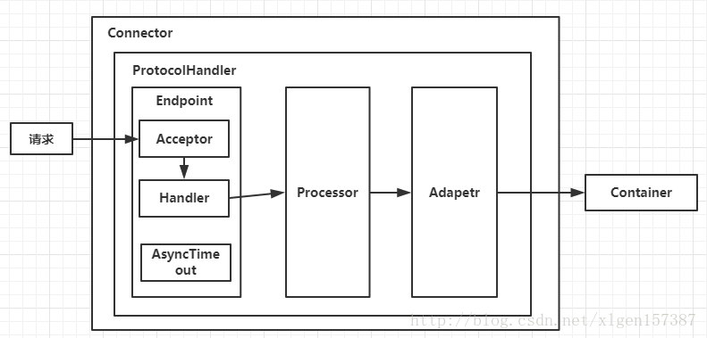 (1)Endpoint用来处理底层Socket的网络连接,Processor用于将Endpoint接收到的Socket封装成Request,Adapter用于将Request交给Container进行具体的处理。
