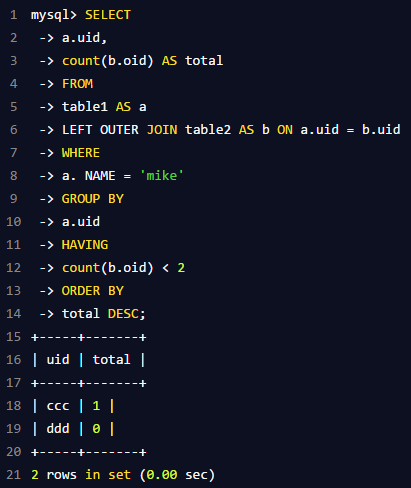 这个子句对VT3表中的不同的组进行过滤,只作用于分组后的数据,满足HAVING条件的子句被加入到VT4表中。