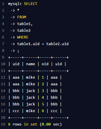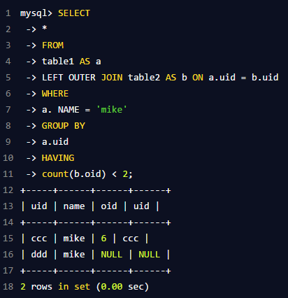 注意:这里因为语法限制,使用了’WHERE’代替,从中读者也可以感受到两者之间微妙的关系;