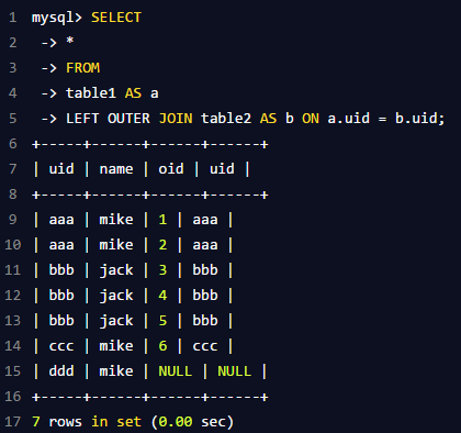 如果使用了外连接(LEFT,RIGHT,FULL),主表(保留表)中的不符合ON条件的列也会被加入到VT1-J2中,作为外部行,生成虚拟表VT1-J3。