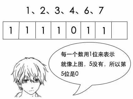 :新的数就去找相应的位,比如来了一个1234,就找一下第1234位,如果是1就存在,是0就不存在啦。