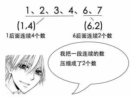 如果数据是1 2 3 4 6 7……这种的,那么可以用(1,4)和(6,2)来表示,这样一来,连续的数都变成了2个数表示。