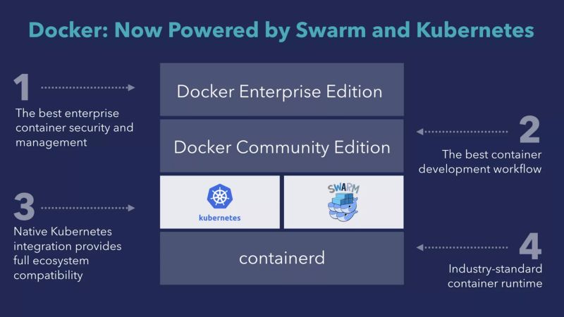 在Docker Swarm与Kubernetes的竞争中,显然是Kubernetes占据了优势。所以Docker紧急掉头,开始原生的支持与Kubernetes的集成。