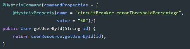 circuitBreaker.errorThresholdPercentage: 异常比率阈值,超出这个比率就会进行熔断circuitBreaker.sleepWindowInMilliseconds: 熔断时长(保持 OPEN 状态的时长)