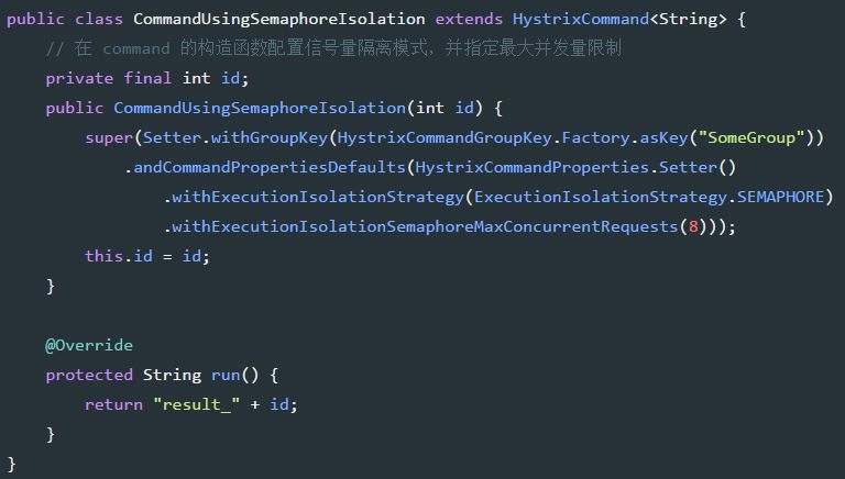 Hystrix 的信号量隔离是在 Command 定义时配置的,比如: