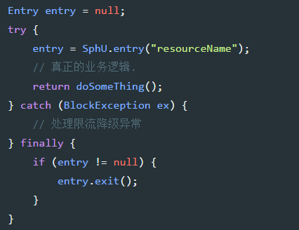 而 Sentinel 并不指定执行模型,也不关注应用是如何执行的。在 Sentinel 中手动定义资源,只需要用 API 将其包装起来即可:
