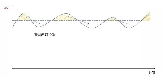 在高压下,只要系统没宕机,如果能将接收的流量持续保持在高位,但又不超过系统所能承载的上限,会是更有效率的运作模式,因为会将这里的波谷填满。