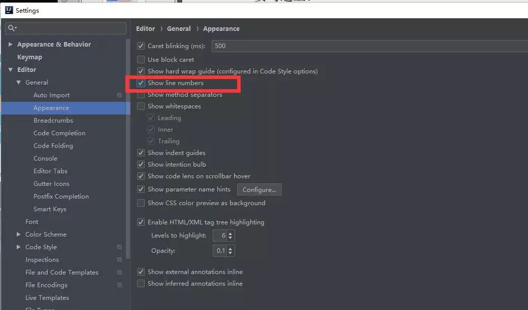 这个的重要性就不用多说了,勾上后代码中,会显示行数!