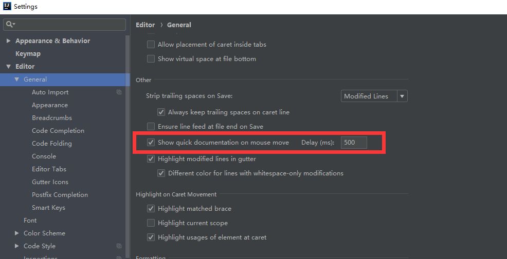 这个容易理解,打开这个开关后。只要把鼠标放在相应的类上,就会出现提示,如下图所示: