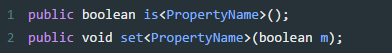 - 基本类型自动生成的getter和setter方法,名称都是isXXX()和setXXX()形式的。