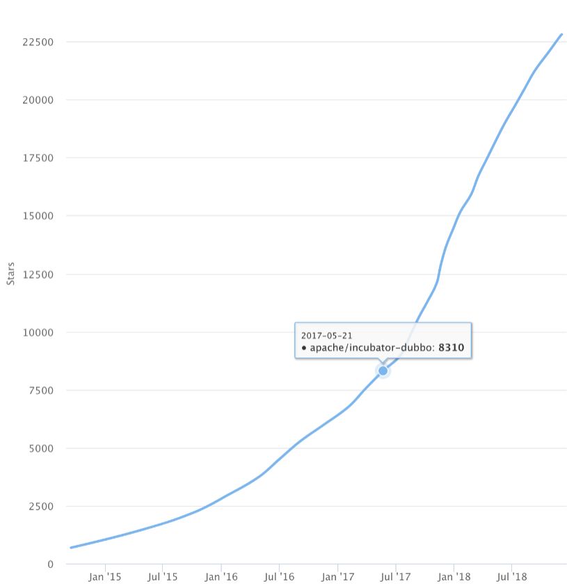 下边 star 的增长数据可以大致看出 Dubbo 的成长: