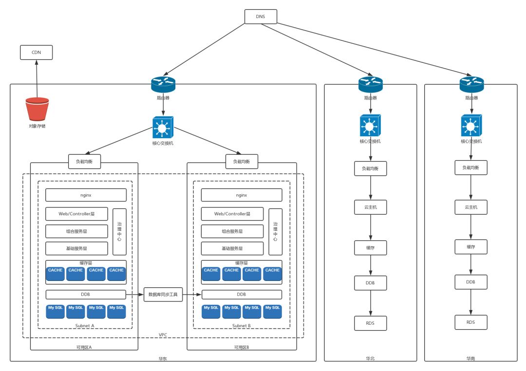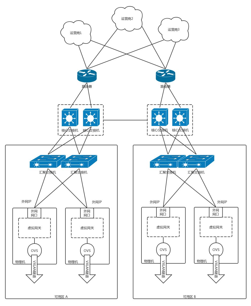 刚才那张图画的是一个可用区的情况,对于多个可用区的情况,我们可以隐去计算节点的情况,将外网访问区域放大。