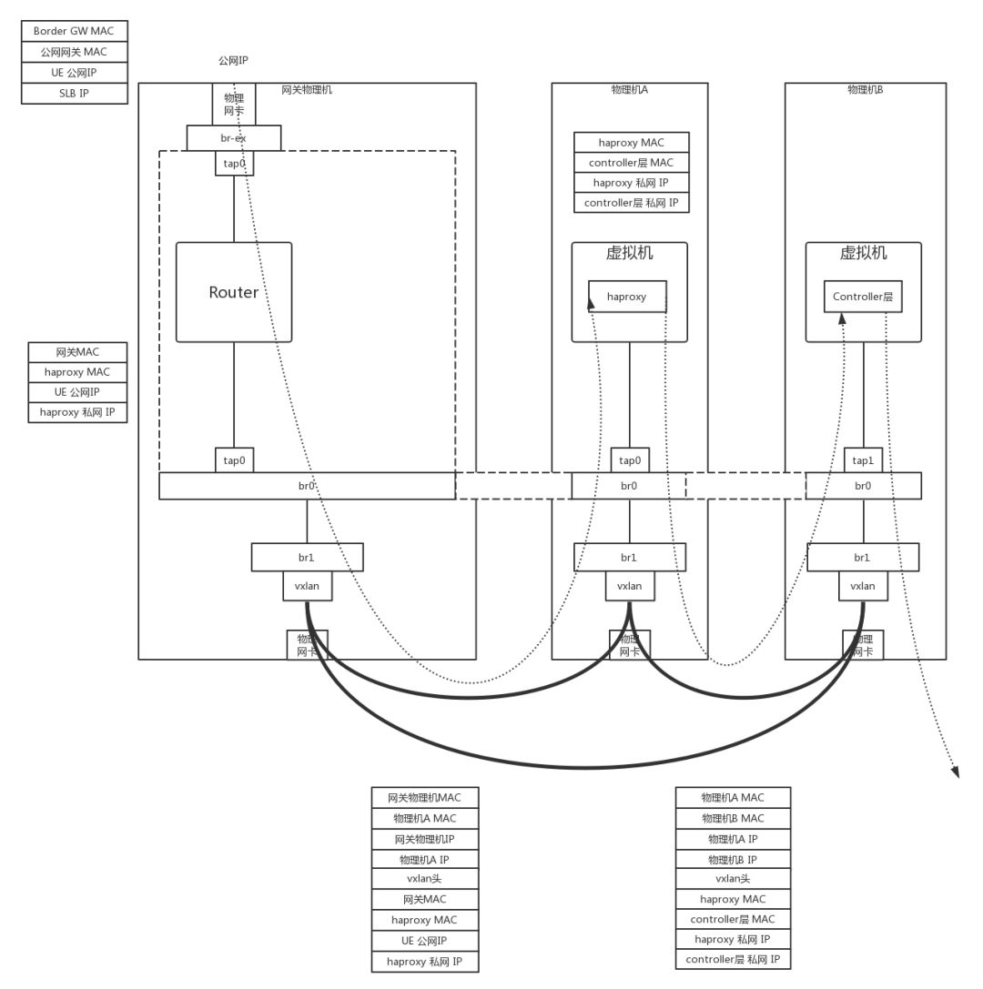 • 外层源MAC:物理机A的MAC;