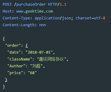 Controller层收到包之后,他是关心HTTP里面是什么的,于是解开HTTP的包,发现是一个POST请求,内容是下单购买一个课程。